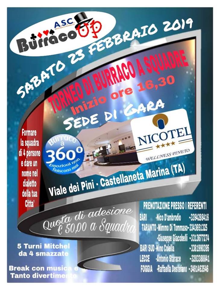 TORNEO DI BURRACO A SQUADRENICOTEL viale dei Pini, CASTELLANETA (TA)