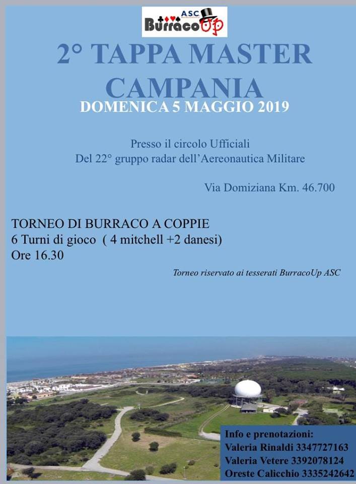 2° TAPPA MASTER CAMPANIA5 MAGGIO ore 16,30Circolo Ufficiali del 22° gruppo radar dell'Aereonautica militarevia Domiziana km 46.700