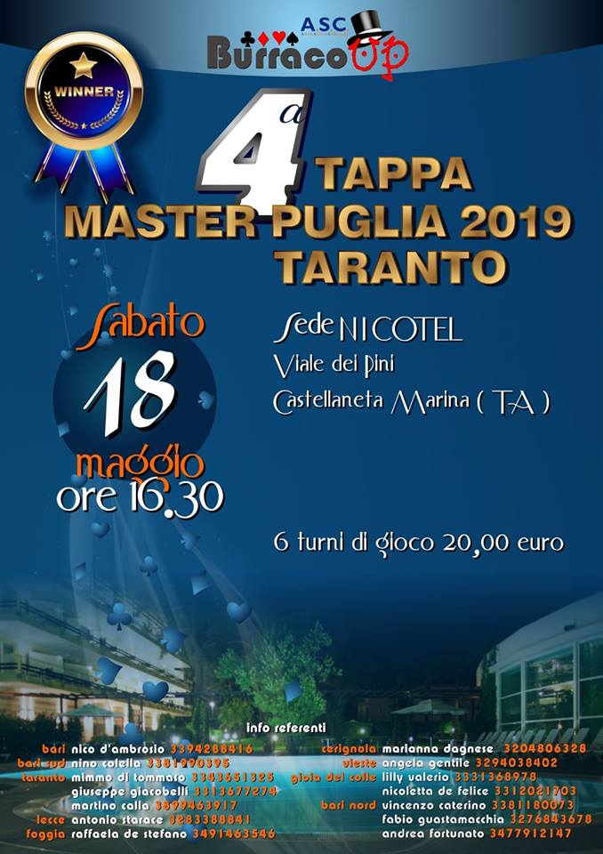 4° TAPPA MASTER PUGLIA18 MAGGIO presso NICOTEL viale dei Pini CASTELLANETA MARINA (TA)
