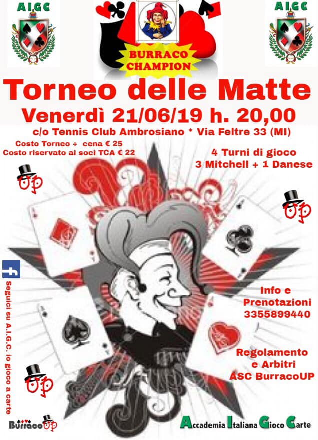 AIGC organizza"TORNEO DELLE MATTE" 21 GIUGNO c/o TENNIS CLUB AMBROSIANO via Feltre 33 (MI)