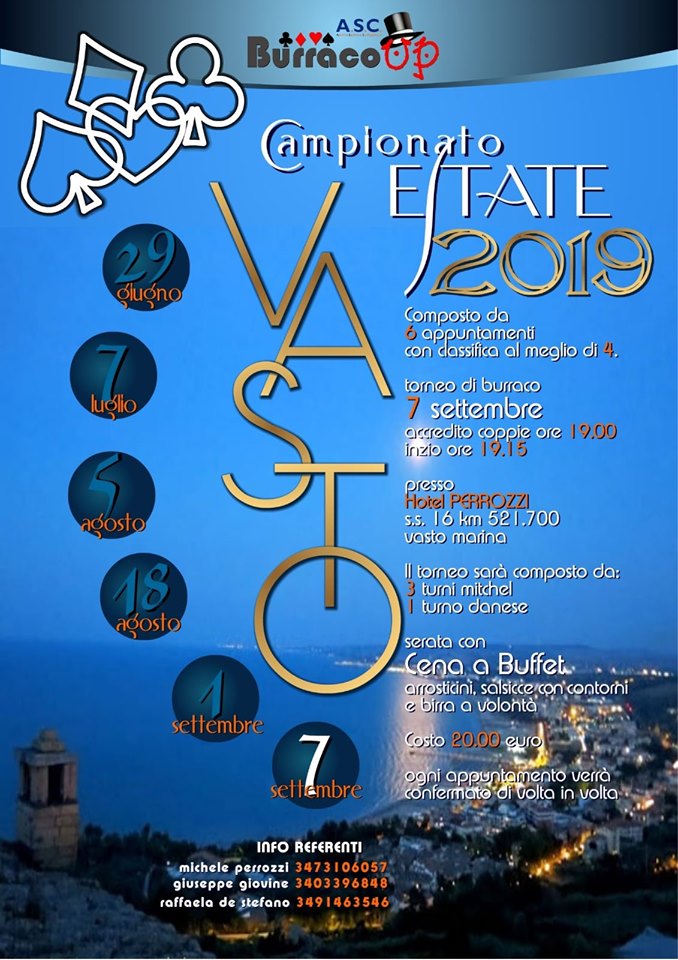 6° TAPPA CAMPIONATO ESTATE 20196 SETTEMBRE ORE 20 c/o HOTEL PERROZZI s.s 16 km 521.700 VASTO MARINA