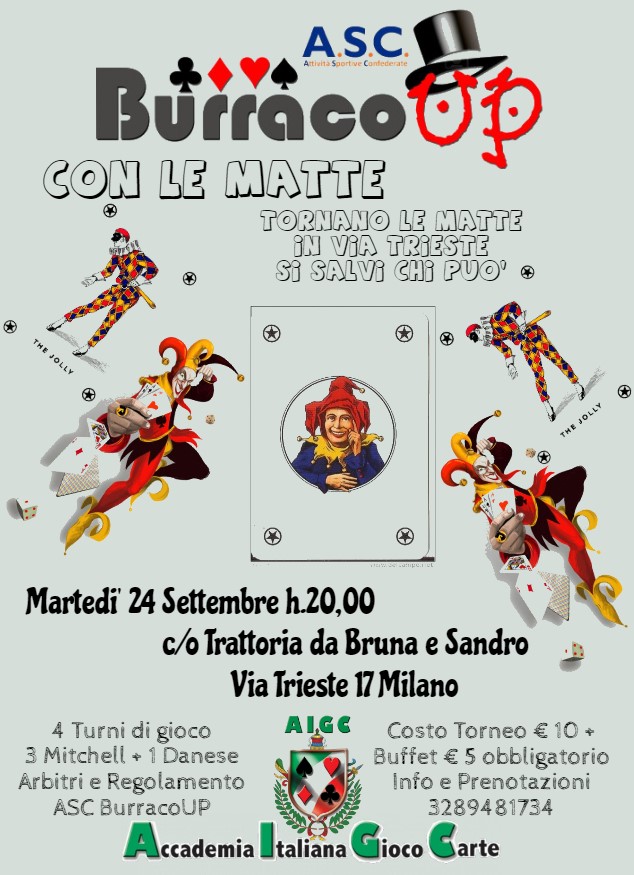 A.I.G.C. organizzaBURRACO CON LE MATTEMARTEDI 24 SETTEMBRE ORE 20,00c/o TRATTORIA DA BRUNA E SANDRO via Trieste 17 MILANO
