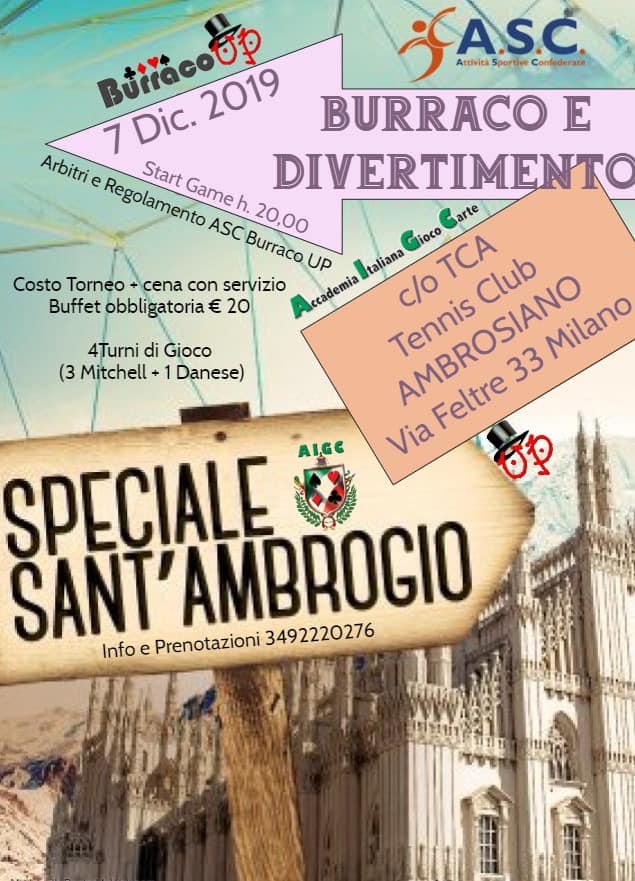 A.I.G.C. organizzaTORNEO SPECIALE DI SANT' AMBROGIO07 DICEMBRE 2019c/o TENNIS CLUB AMBROSIANO via Feltre 33 MILANO