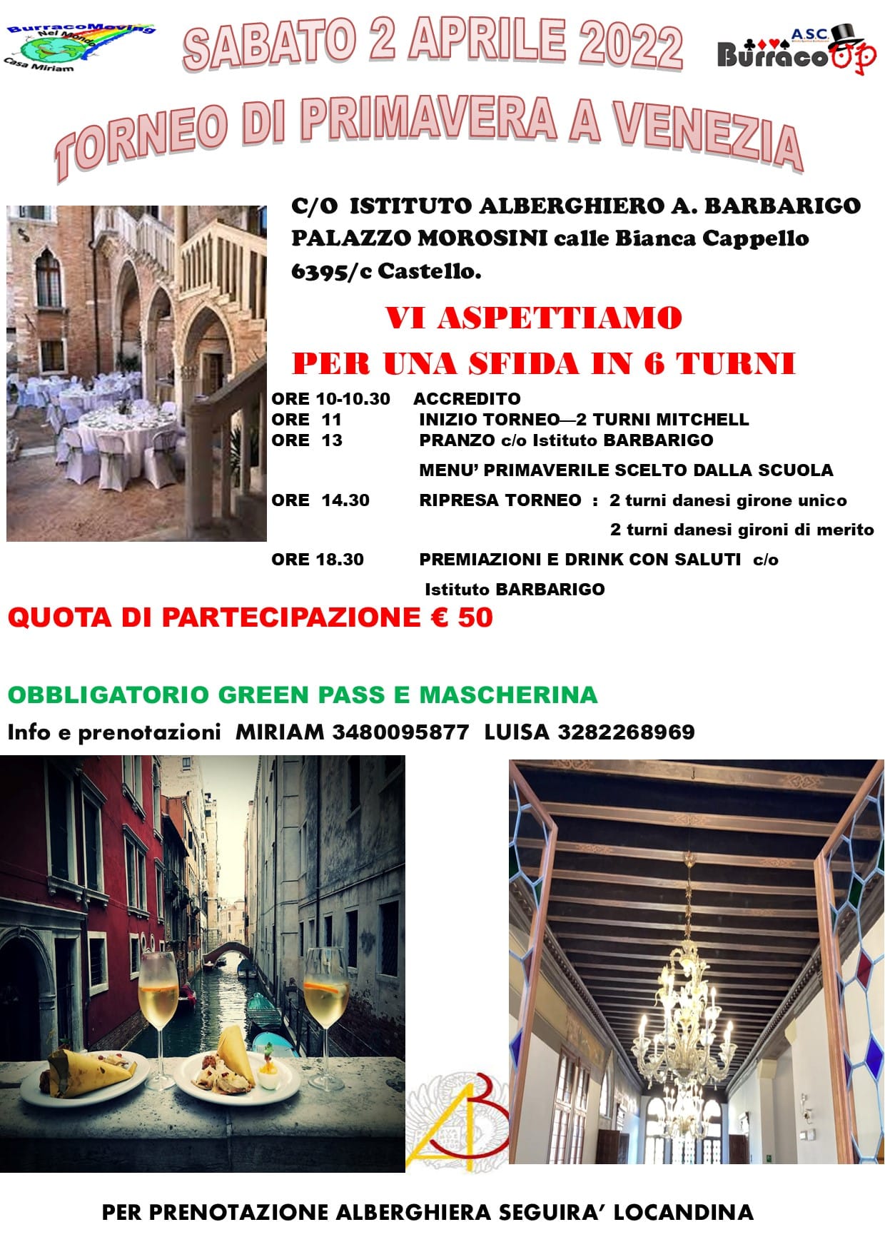 SABATO 2 APRILEc/o ISTITUTO ALBERGHIERO BARBARIGOPALAZZO MOROSINI CALLE BIANCA CAPPELLO 6395/c CASTELLOVENEZIA