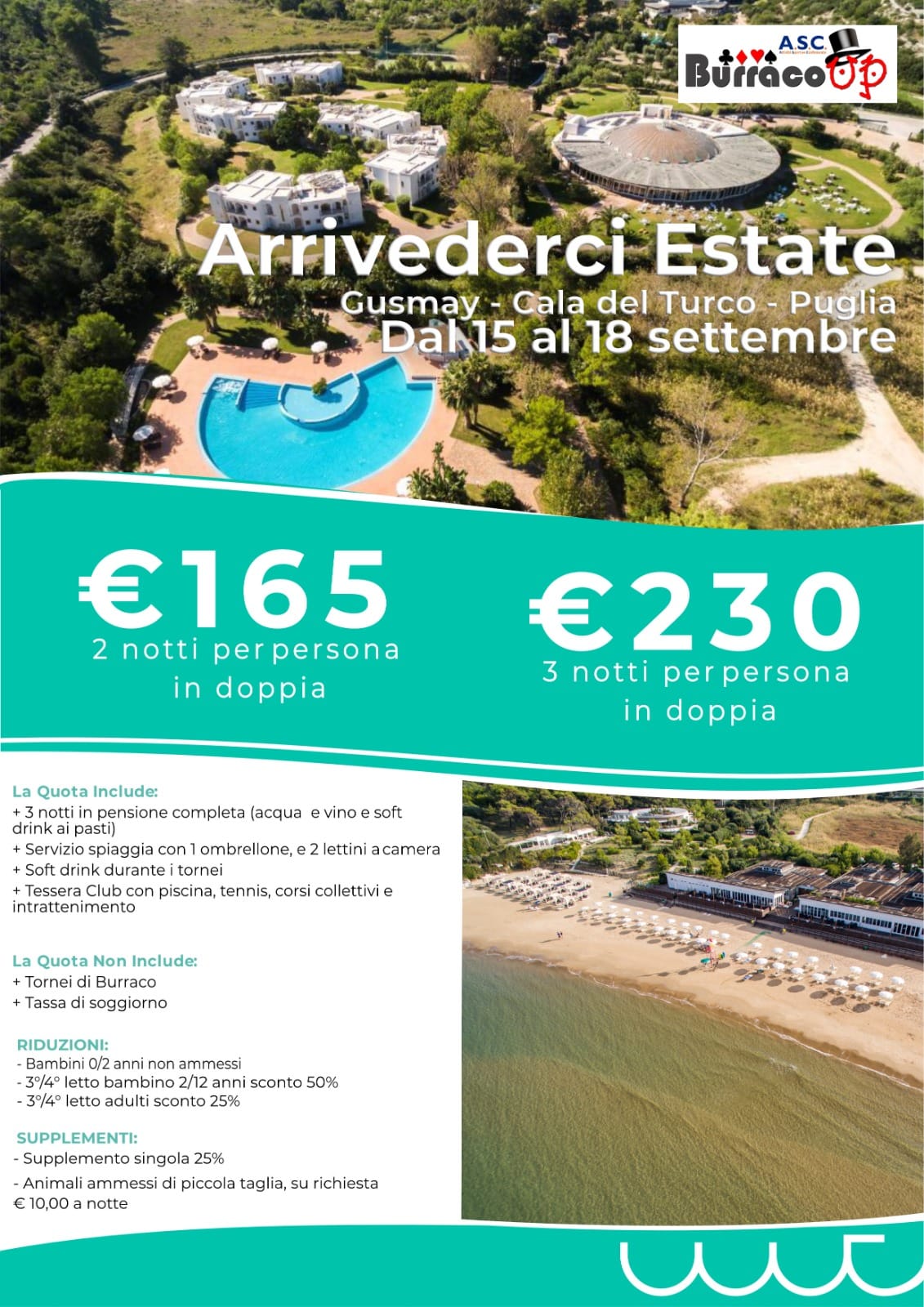 DAL 15 AL 18 SETTEMBREGUSMAY - CALA DEL TURCO - PUGLIA