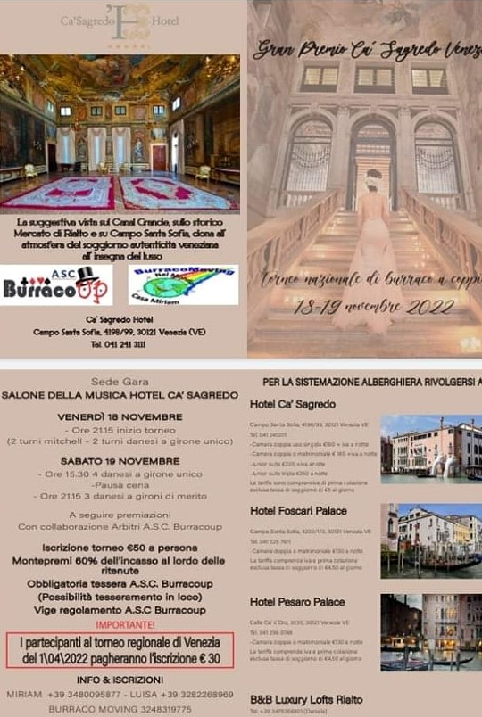 TORNEO NAZIONALE DI BURRACO A COPPIE18-19 NOVEMBRE 2021 VENEZIA