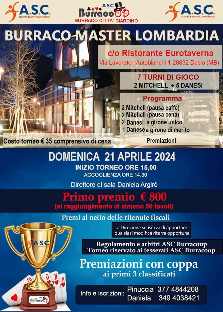 DOMENICA 21 APRILE ORE 15.00c/o ristorante EUROTAVERNA DESIO (MB)