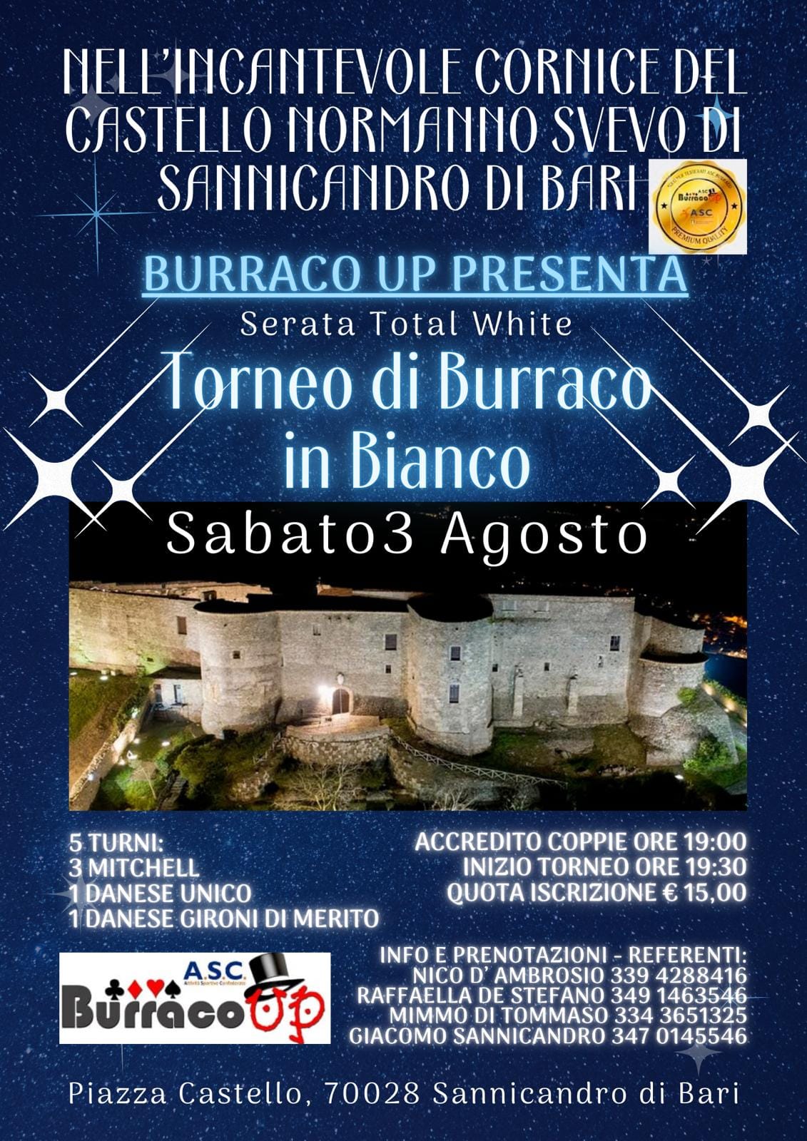 SABATO 3 AGOSTO ORE 19.00c/o CASTELLO NORMANNO SVEVO DI SANNICANDROpiazza Castello SANNICANDRO di BARI